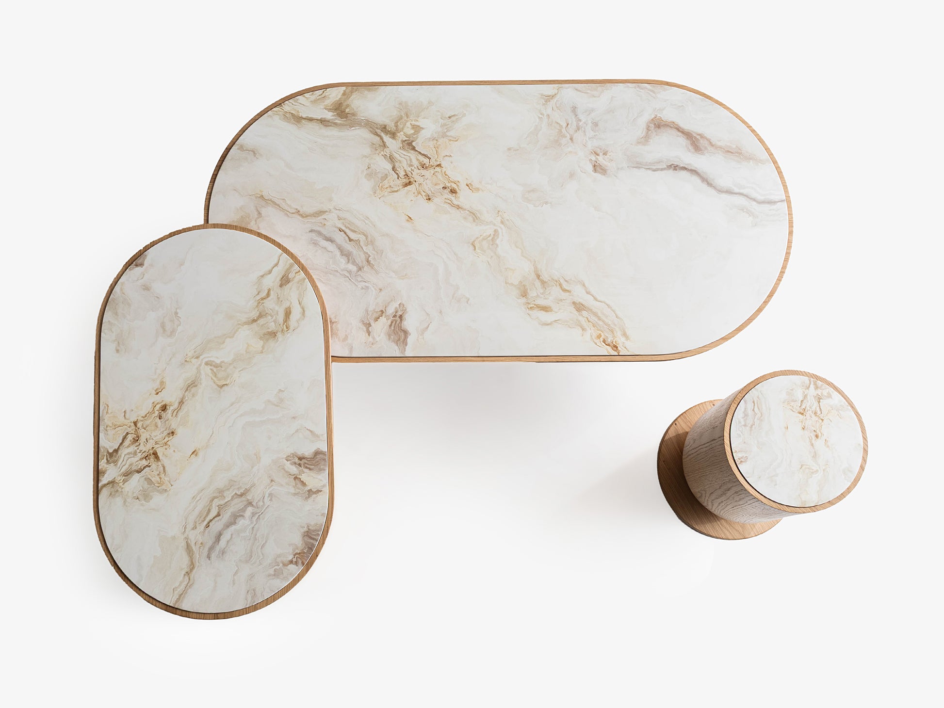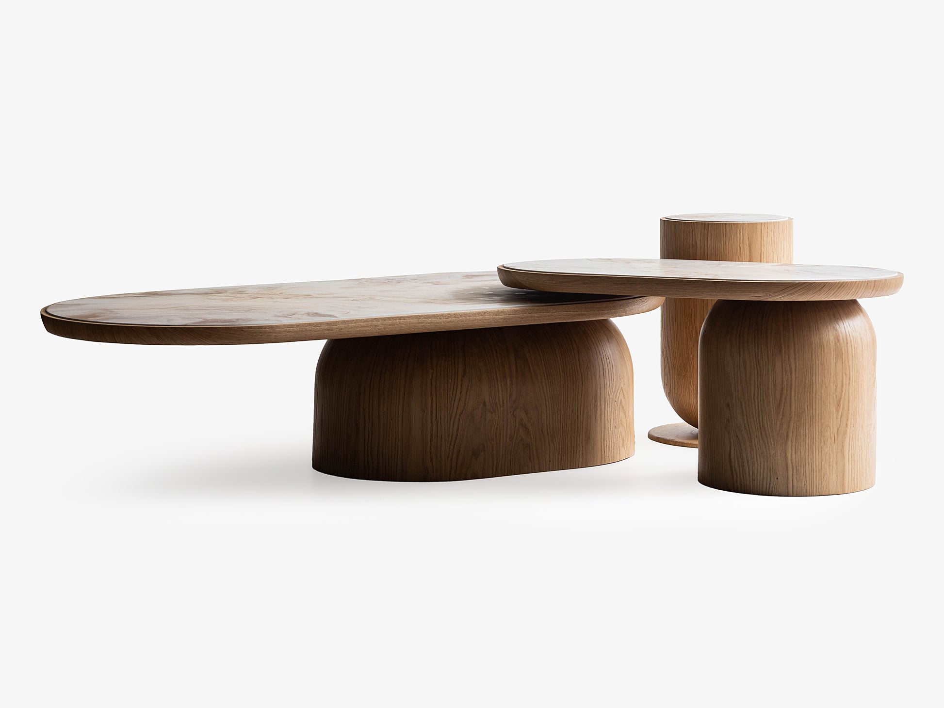 Queen Mermer Görünümlü Meşe Orta Sehpa